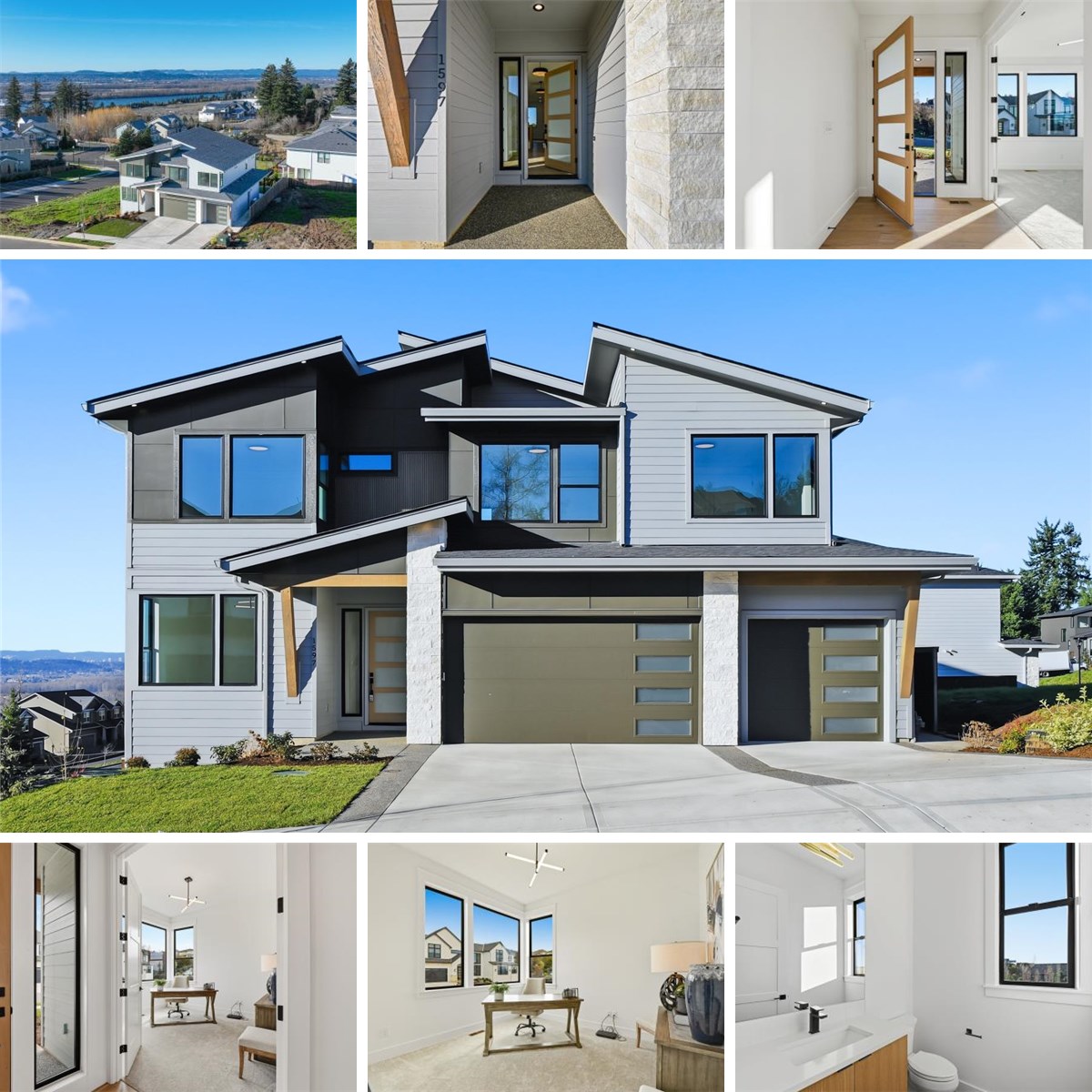 Open House Friday-Sunday 12:00Pm-4:00PM! MOVE IN READY!!! Special Financing Opportunities! Corner Lot with a View! This stunning 3,256 sq ft, 2-story home is a perfect blend of style and functionality. Featuring 4 spacious bedrooms, 3.5 baths, a bonus room (or 5th Bedroom), and a den/office, this home offers plenty of space for every need. The oversized 3-car garage comes with sleek Vertical Lites Series Glass Doors, adding a modern touch. With 10 ft ceilings on the main floor and 9 ft upstairs, the open-concept waterfall island kitchen, complete with black stainless steel appliances, a gas range, and a walk-in pantry, flows seamlessly into the great room—ideal for entertaining. Cozy up by the fireplace or admire the built-ins & floating shelves in the great room. Engineered Hardwood floors on main & stairs and hallways upstairs! Night lights on stairway. The vaulted primary suite boasts French doors, a luxurious free-standing tub, a fully tiled walk-in shower with a light up niche, and an expansive walk-in closet. Two bedrooms share a convenient Jack and Jill bath, each with its own sink. A large bonus room with double closets and French doors offers additional space for relaxation or hobbies. Step outside to the covered deck, perfect for outdoor living year-round. With interior home sprinklers, 3-panel shaker doors, designer black square lever hardware, Craftsman-style trim, and 5 1/4 inch baseboards throughout, this home is the epitome of elegance and comfort. Call today for more details!