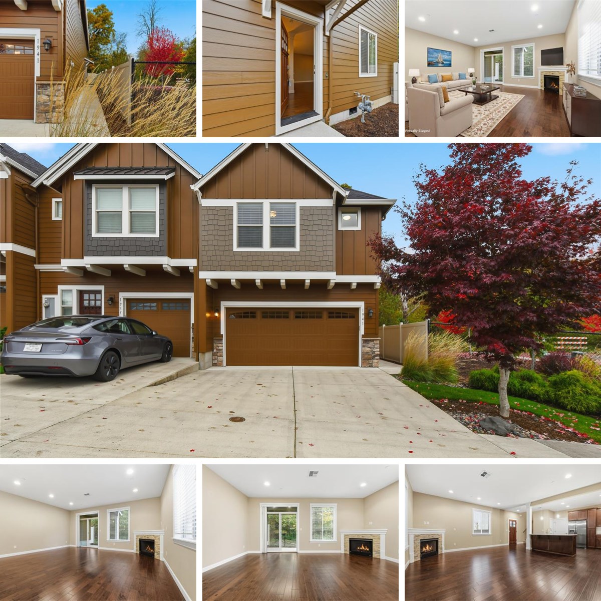 Cute and move-in ready townhome in a highly desired gated Camas community! This 3-bedroom, 2.5-bath, 1,721 sq. ft. home features engineered hardwood floors and 9-foot ceilings on the main. The stunning island kitchen boasts Quartz counters, a full-height tile backsplash, gas range, and refrigerator included. Enjoy the inviting great room with a stacked stone gas fireplace and slider to a fenced covered patio that backs up to a greenbelt. Upstairs offers a vaulted primary suite with a walk-in closet and a luxurious bath featuring tile floors, tile shower walls, and double sinks with quartz counters. A spacious loft area, double car garage with opener, interior sprinkler system, and fresh exterior paint complete this perfect package. Move right in and start enjoying Camas living!