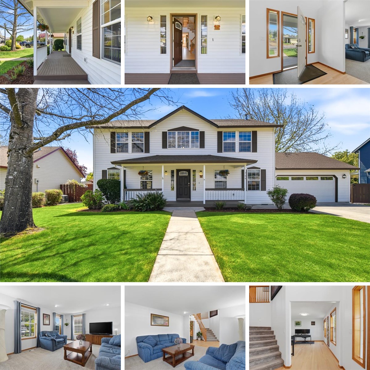 Pride of ownership shines throughout this beautifully maintained 4 bedroom, 2.5 bath home just under 2,400 sq. ft. in the highly sought-after Southview Heights neighborhood. An inviting front porch welcomes you into a vaulted entry filled with natural light, warm real hardwood floors, and soaring ceilings.The spacious living room and generously sized dining room provide the perfect setting for everyday living and hosting. The stunning updated kitchen is truly the centerpiece of the home, featuring quartz countertops, gorgeous soft-close cabinetry, a unique tile backsplash, custom range hood, high-end appliances, a large walk-in pantry, and an eating area, all enhanced by updated lighting.The cozy family room opens to the kitchen and showcases a beautiful gas fireplace with ledgestone surround, creating a warm and inviting space. The main level laundry room adds convenience with built-in cabinets and shelving.Upstairs, the spacious primary suite offers a walk-in closet and a beautifully updated bathroom complete with marble counters, new cabinetry, a luxurious Kohler shower, soaking tub, and luxury vinyl tile flooring. Three additional bedrooms are nicely sized, and the updated hall bath features marble counters, new cabinetry, and luxury vinyl tile.Important updates include a new roof in 2019, a newer water heater, and a reverse osmosis water filtration system, providing peace of mind for years to come.Step outside to your own peaceful retreat with a fully fenced backyard, a 10x12 shop with 220 power, an expansive wood deck, and a fire pit area perfect for summer entertaining. RV parking provides space for a travel trailer or boat.Located in a quiet and desirable neighborhood close to parks, walking trails, charming downtown restaurants and convenient nearby shopping with easy access to I-5—this is a truly wonderful place to call home.
